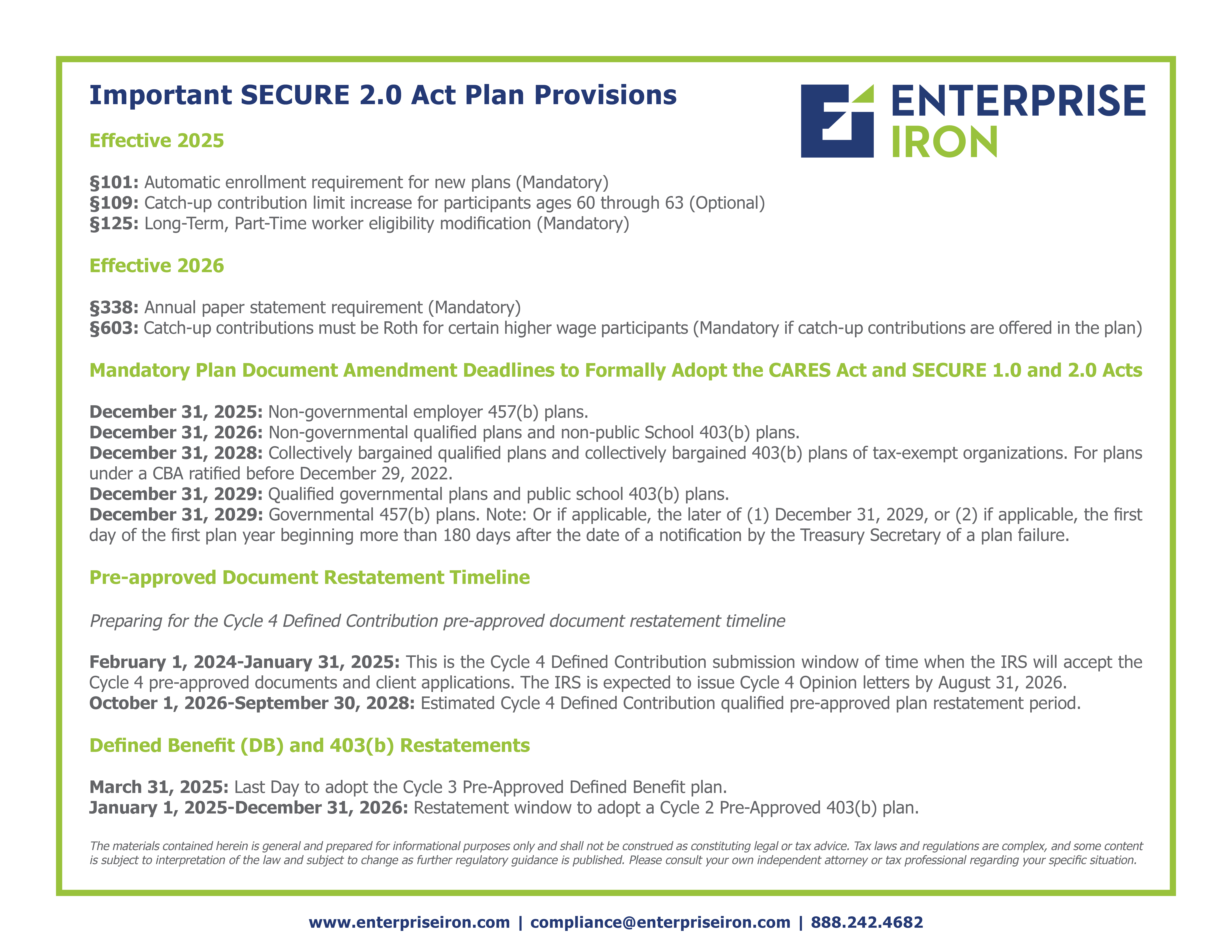 • Review IRS guidance on annual filings and make needed updates accordingly